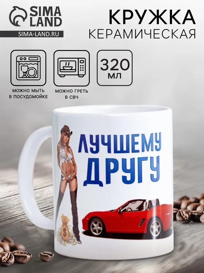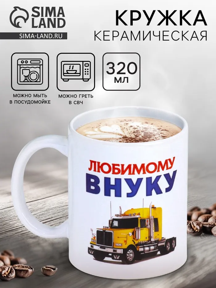 Кружка изготовлена из керамики. Рисунок нанесён методом сублимации, при котором краска проникает в верхний слой изделия, поэтому изображение получается стойким.