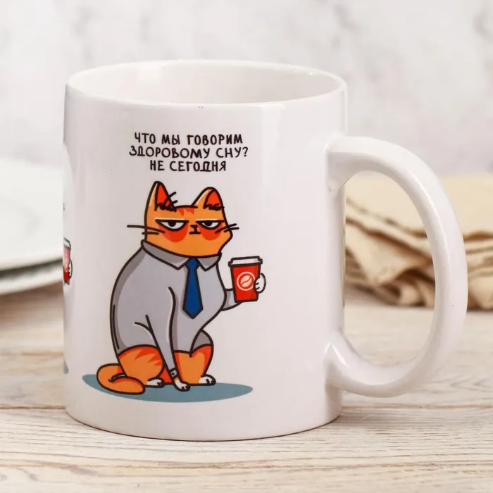 Кружка изготовлена из керамики. Рисунок нанесён методом сублимации, при котором краска проникает в верхний слой изделия, поэтому изображение получается стойким.