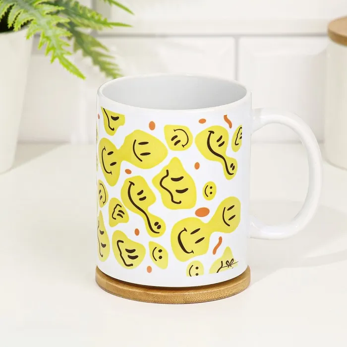Кружка изготовлена из керамики. Рисунок нанесён методом сублимации, при котором краска проникает в верхний слой изделия, поэтому изображение получается стойким.