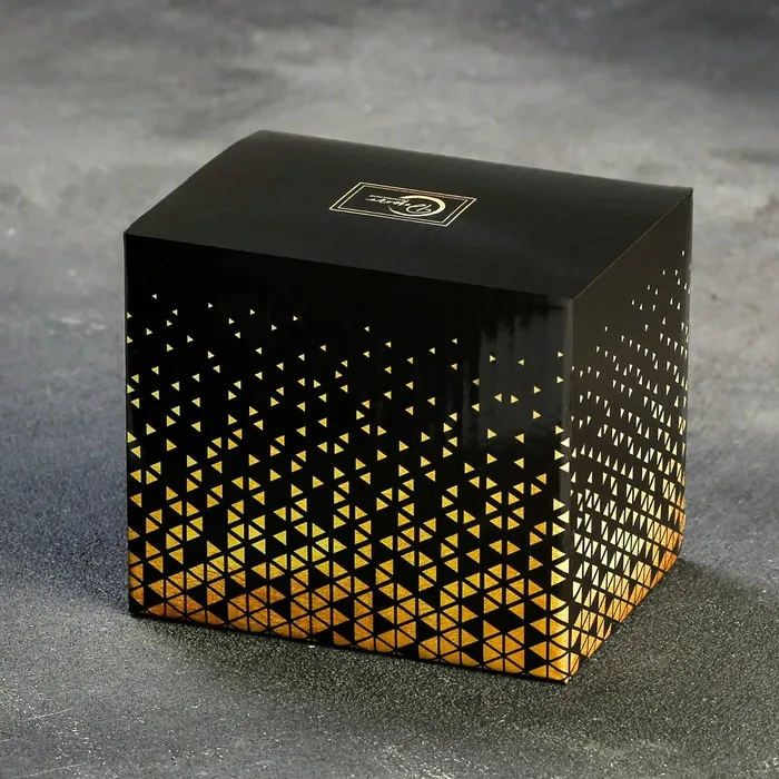Рисунок нанесён с помощью фольгирования, поэтому переливается золотом.