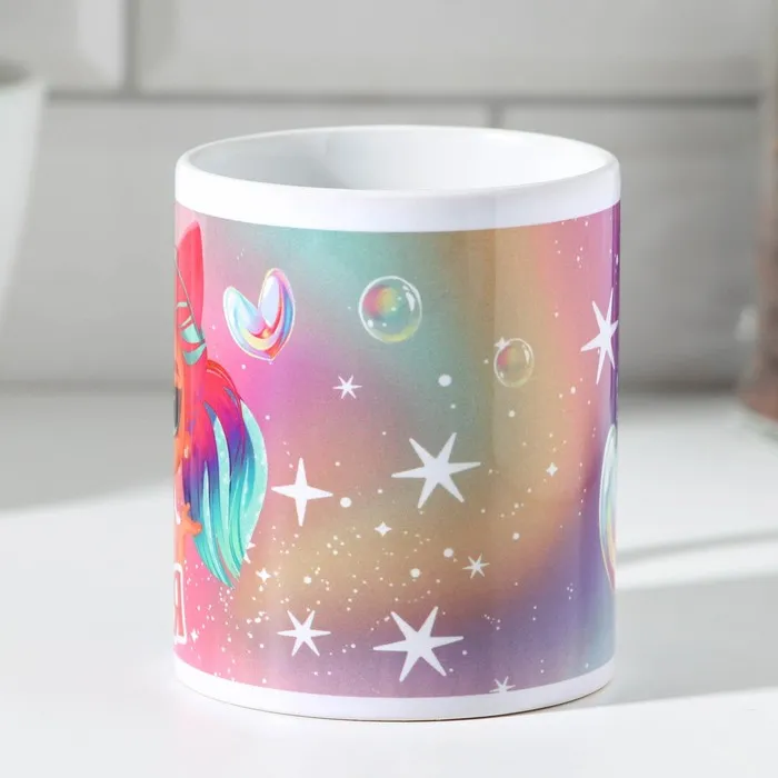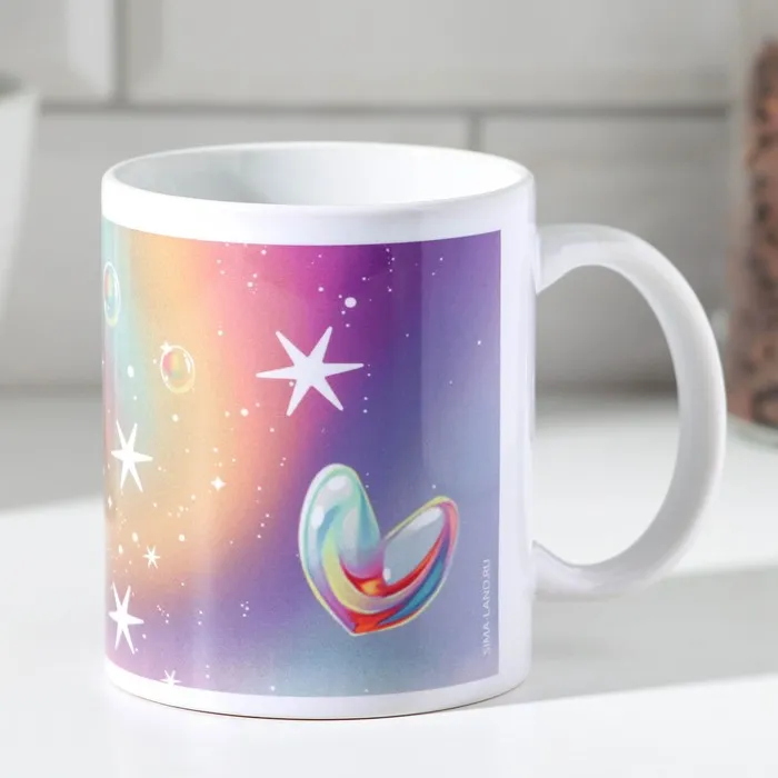 Кружка изготовлена из керамики. Рисунок нанесён методом сублимации, при котором краска проникает в верхний слой изделия, поэтому изображение получается стойким.