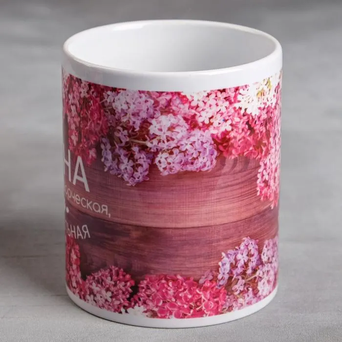 Кружка изготовлена из керамики. Рисунок нанесён методом сублимации, при котором краска проникает в верхний слой изделия, поэтому изображение получается стойким.