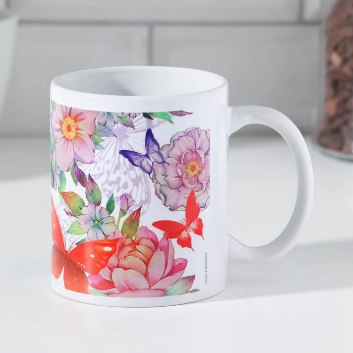 Кружка изготовлена из керамики. Рисунок нанесён методом сублимации, при котором краска проникает в верхний слой изделия, поэтому изображение получается стойким.