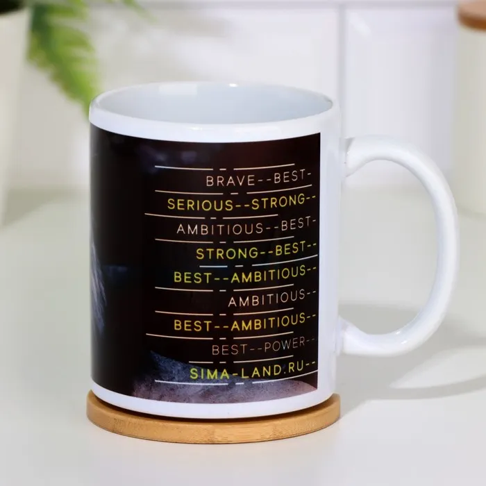 Кружка изготовлена из керамики. Рисунок нанесён методом сублимации, при котором краска проникает в верхний слой изделия, поэтому изображение получается стойким.