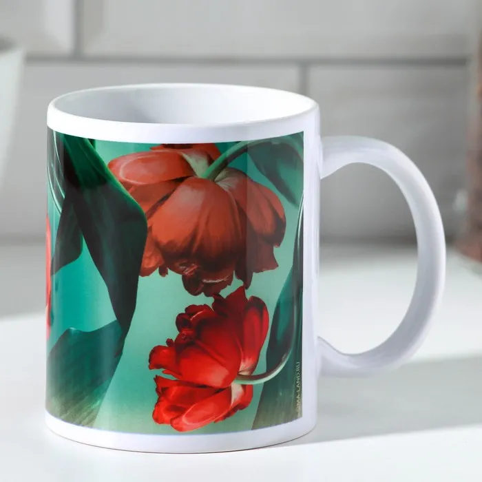 Кружка изготовлена из керамики. Рисунок нанесён методом сублимации, при котором краска проникает в верхний слой изделия, поэтому изображение получается стойким.