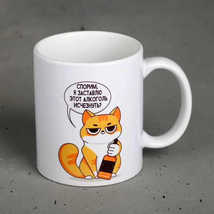 Кружка изготовлена из керамики. Рисунок нанесён методом сублимации, при котором краска проникает в верхний слой изделия, поэтому изображение получается стойким.