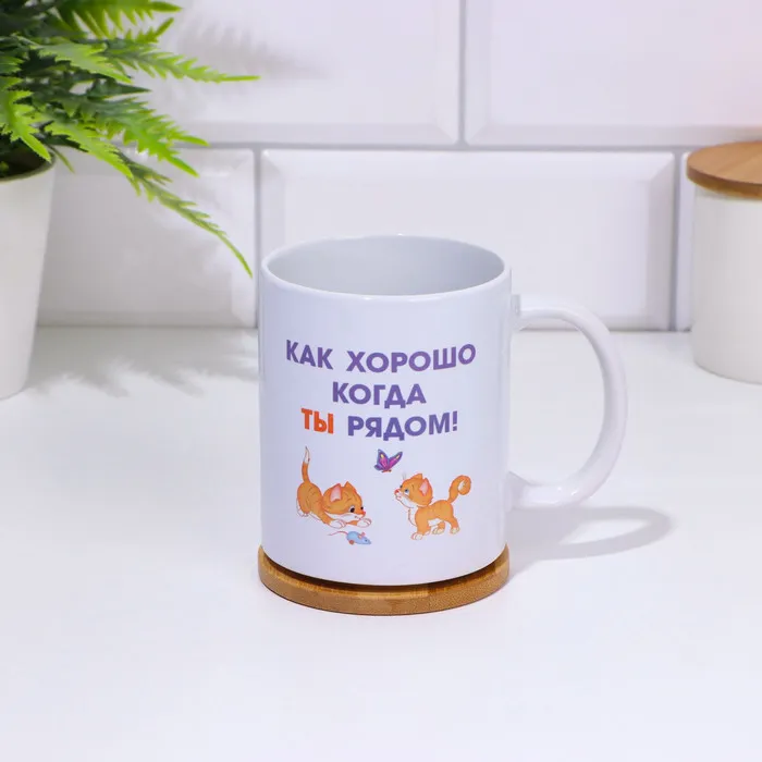 Кружка изготовлена из керамики. Рисунок нанесён методом сублимации, при котором краска проникает в верхний слой изделия, поэтому изображение получается стойким.