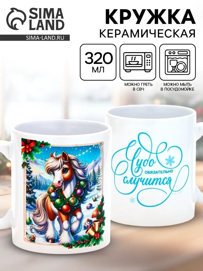 Кружка керамическая новогодняя «Чудо обязательно случится», 320 мл — Характеристики