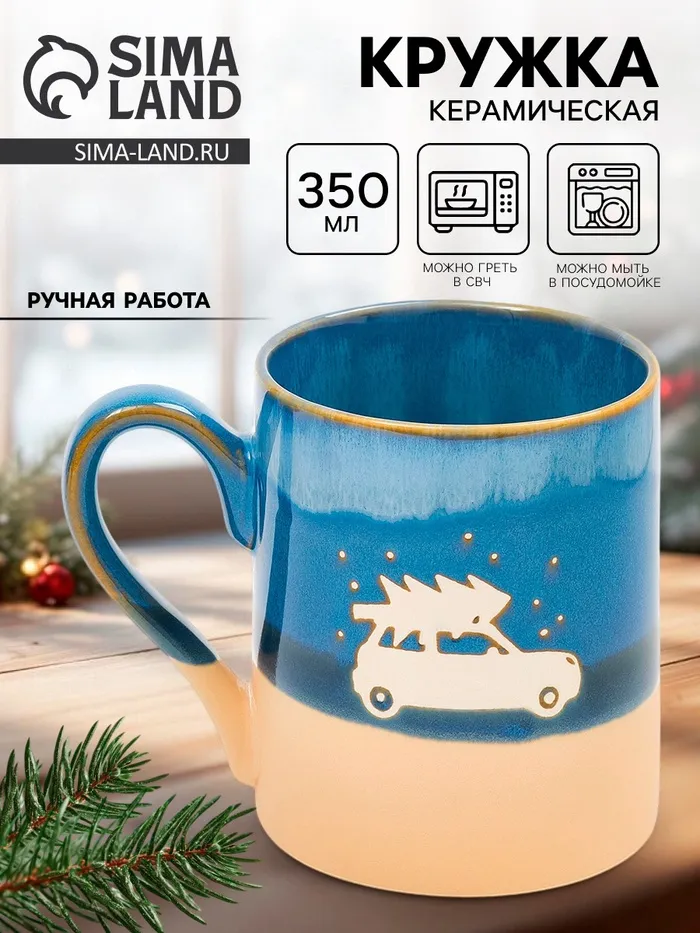 Кружка керамическая новогодняя «Машина с ёлкой», 350 мл, ручная работа — Характеристики