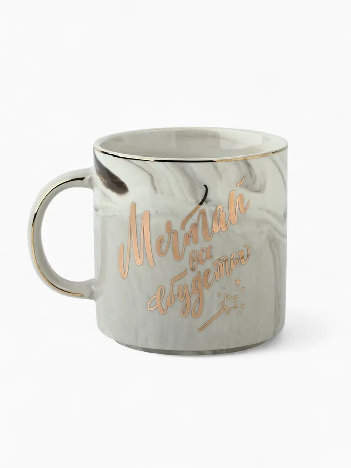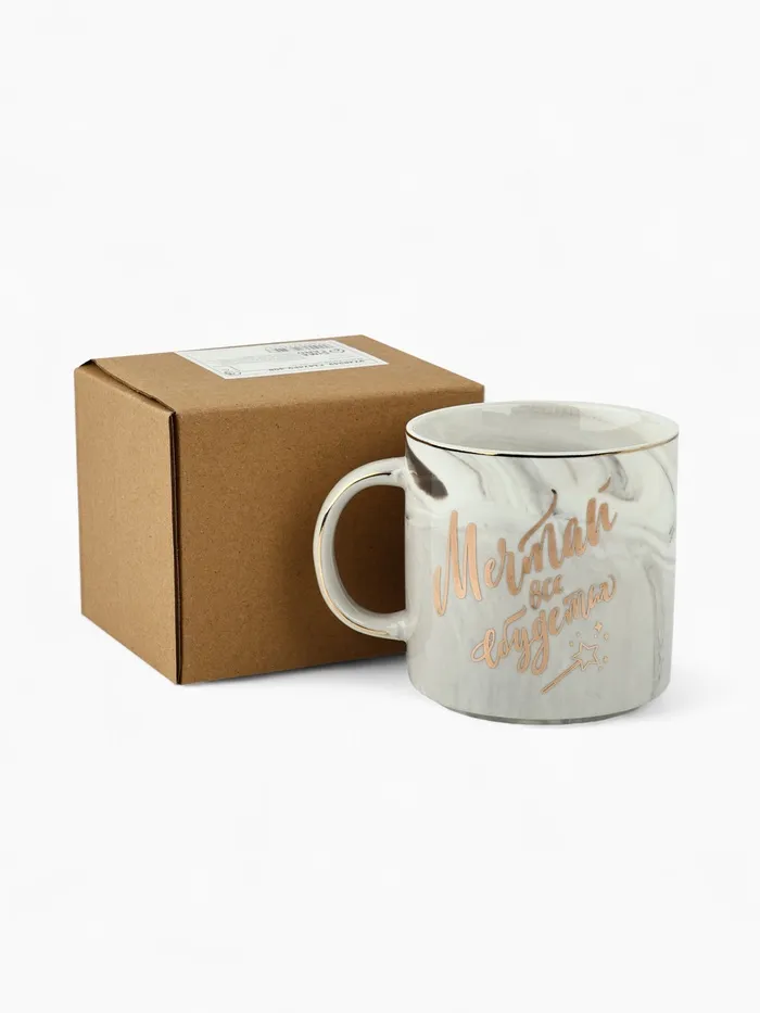 Представляем вам нашу уникальную новогоднюю керамическую кружку с мраморным узором и золотой деколью! Объём этой стильной кружки составляет 350 мл, что позволяет наслаждаться горячим напитком в уютной обстановке.