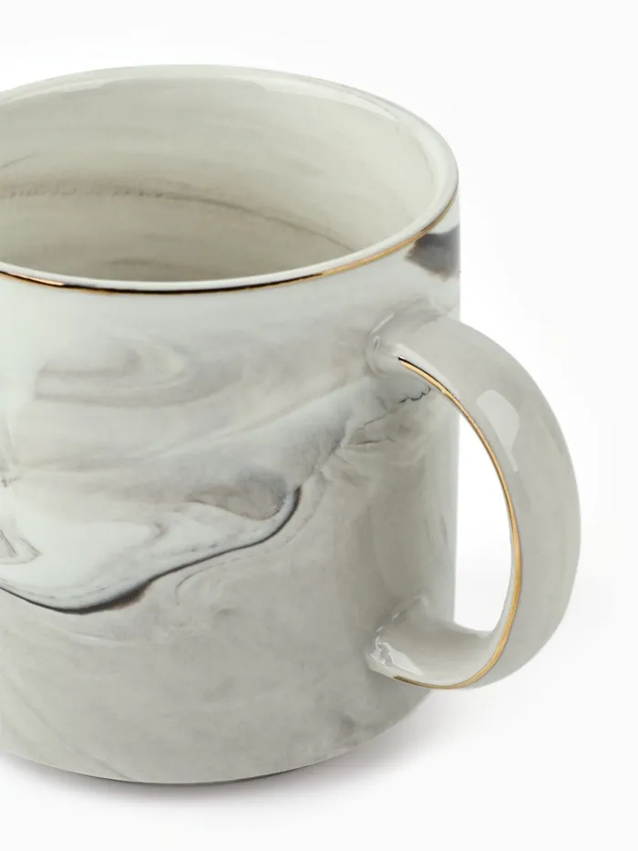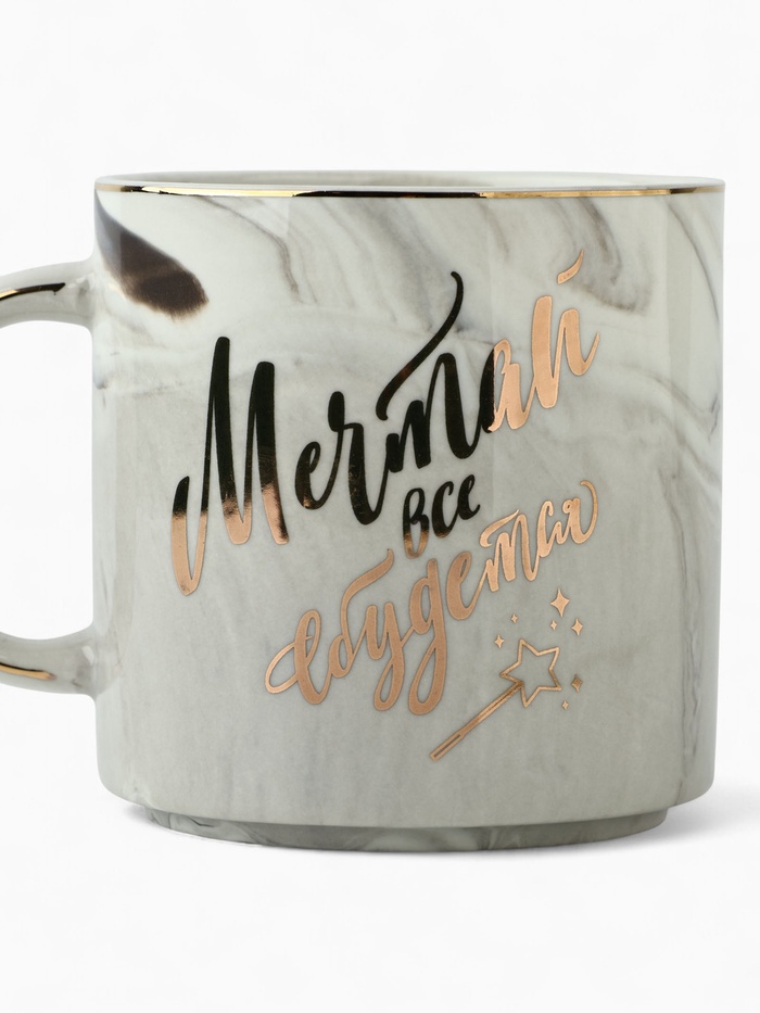 - Мраморный узор придаёт кружке изысканность и элегантность.