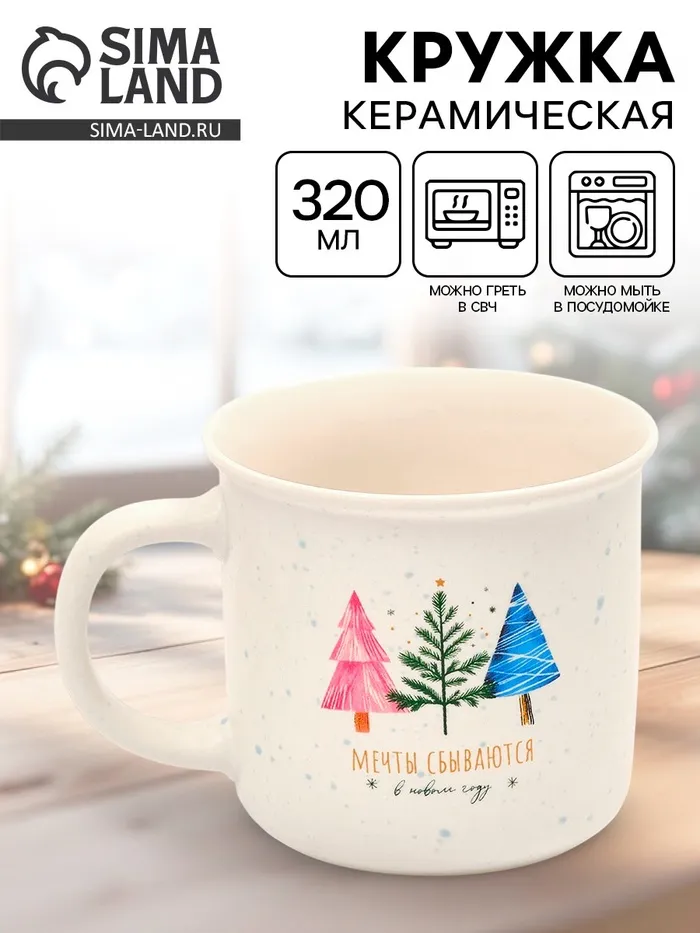 Кружка керамическая новогодняя «Мечты сбываются», 320 мл — Характеристики