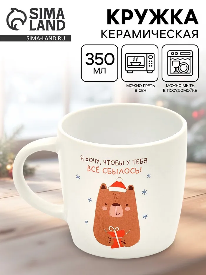 Новогодняя керамическая кружка объемом 350 мл создана для того, чтобы наполнить ваши зимние вечера теплом и праздничным настроением. Изготовленная из качественной керамики, она прекрасно сохраняет температуру напитка, будь то ароматный глинтвейн, горячий шоколад или любимый чай с мандариновыми нотками.