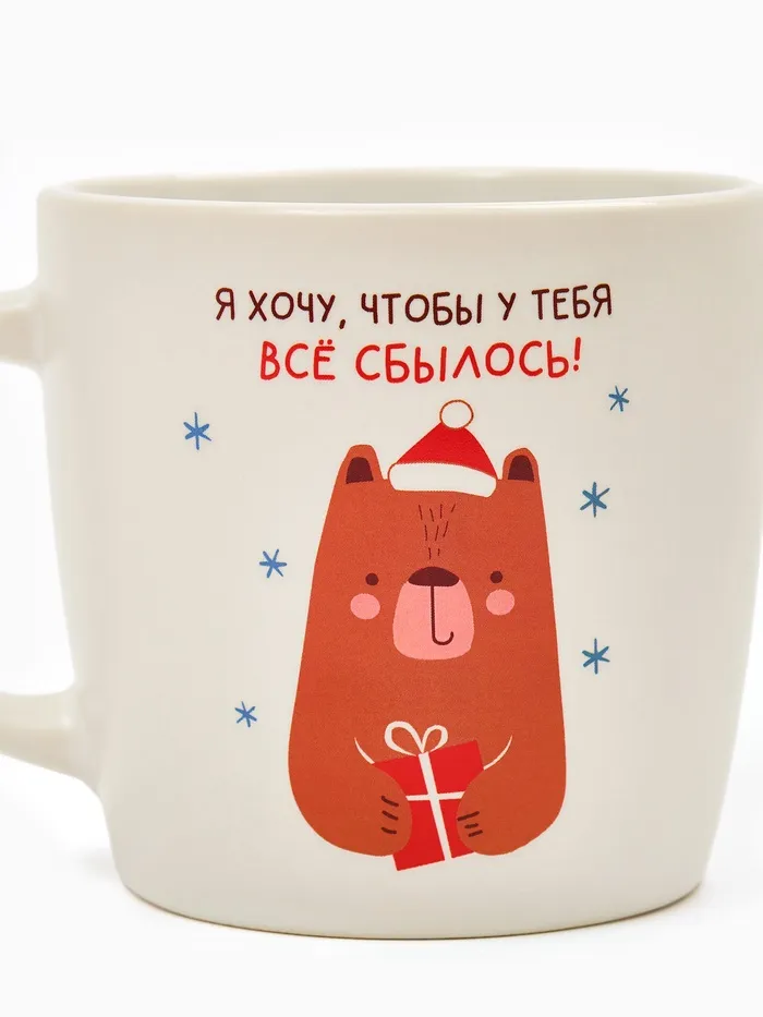 Эта кружка станет прекрасным дополнением к новогоднему столу или милым тематическим подарком для коллег и близких. Ее праздничный вид создаст особую атмосферу зимнего уюта, превращая обычное чаепитие в маленькое новогоднее чудо.
