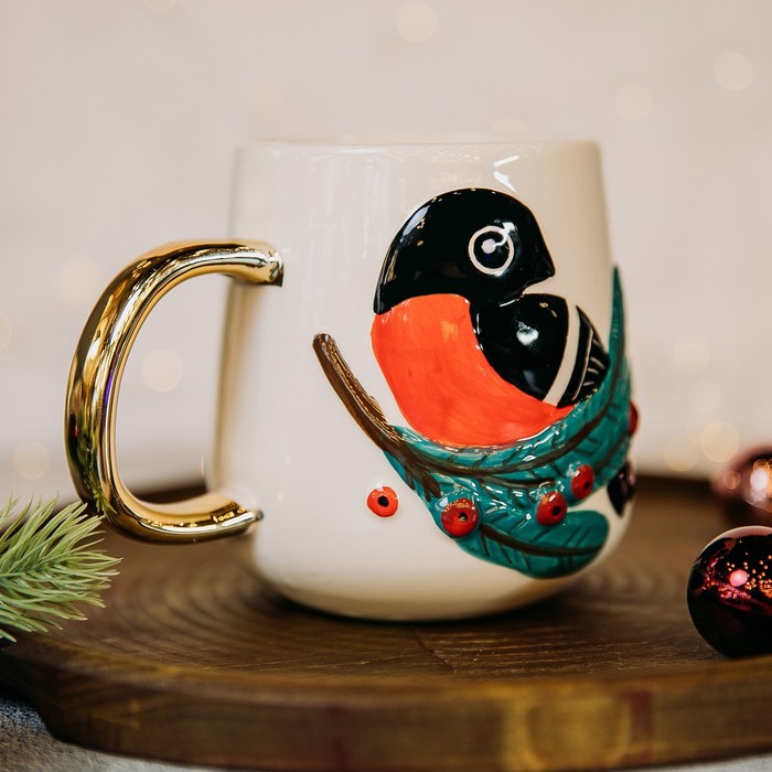 Кружка керамическая новогодняя «Снегирь», 600 мл, ручная работа — Характеристики