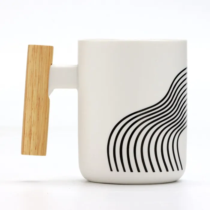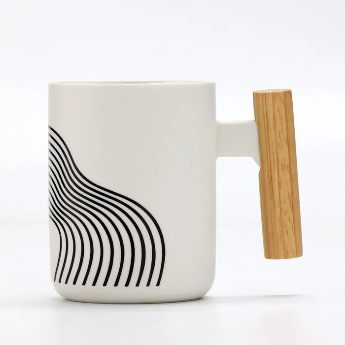 Кружка керамическая с деревянной ручкой «Абстракция», 400 мл, белая — Характеристики