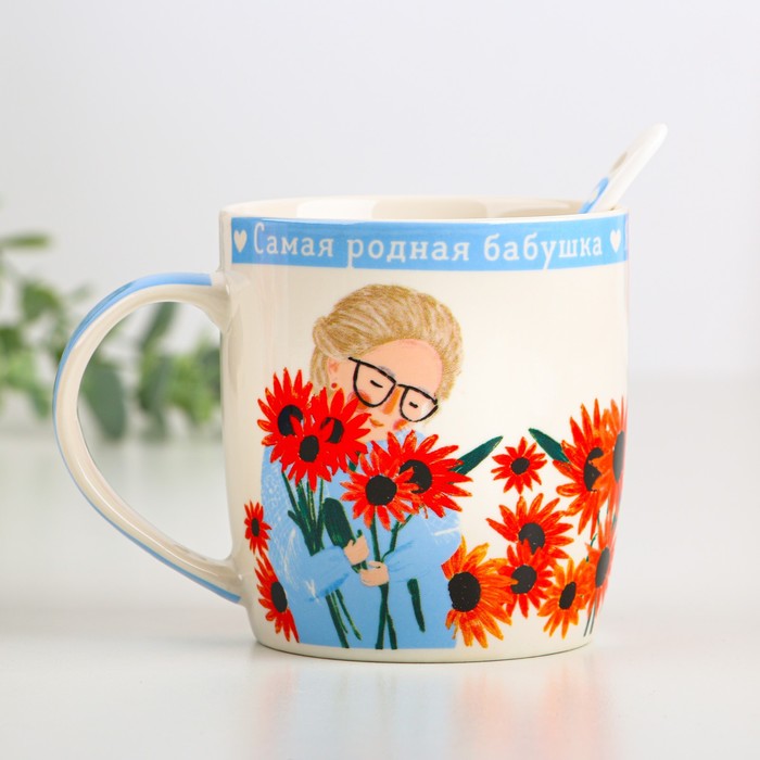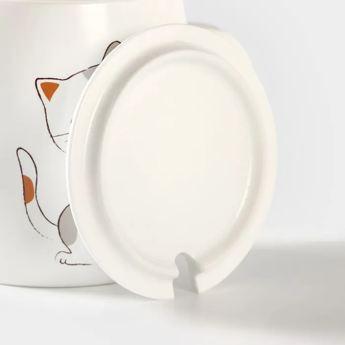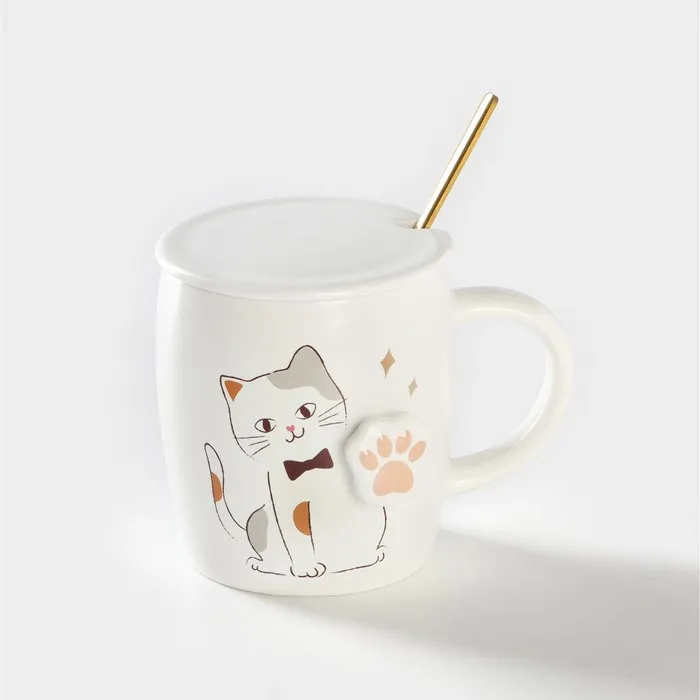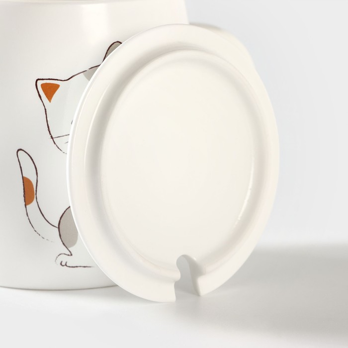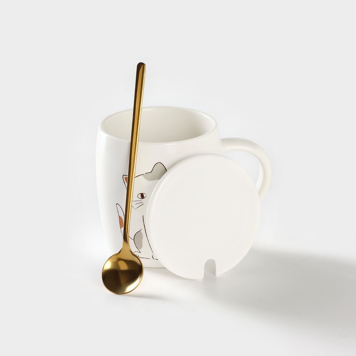 Кружка керамическая с крышкой и ложкой «Кошечка», 350 мл, цвет белый — Характеристики