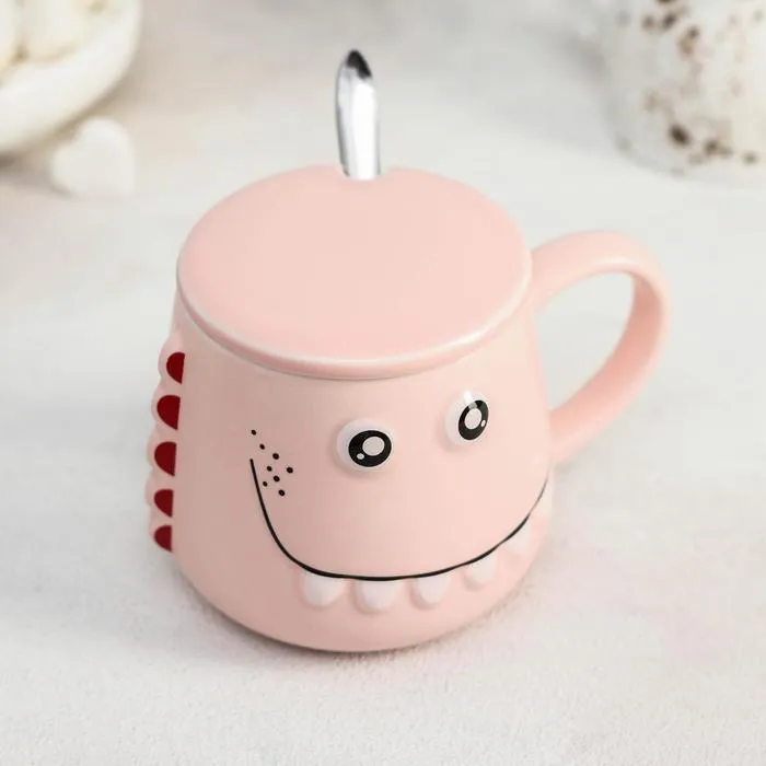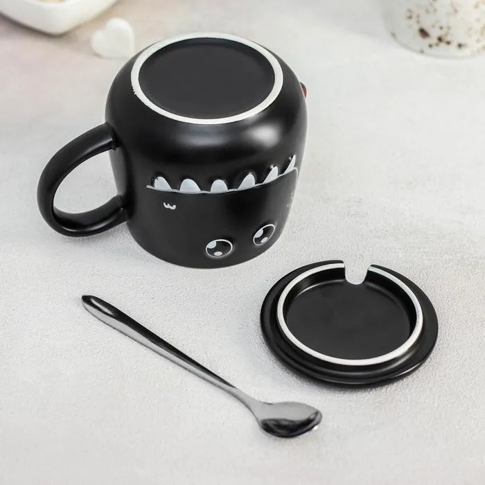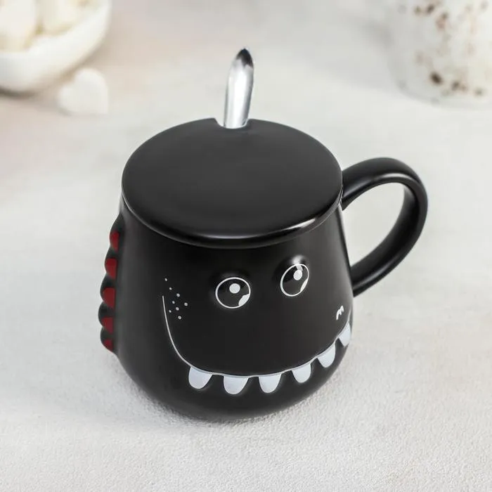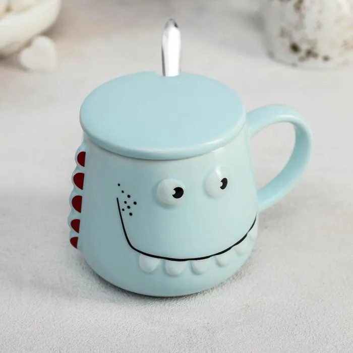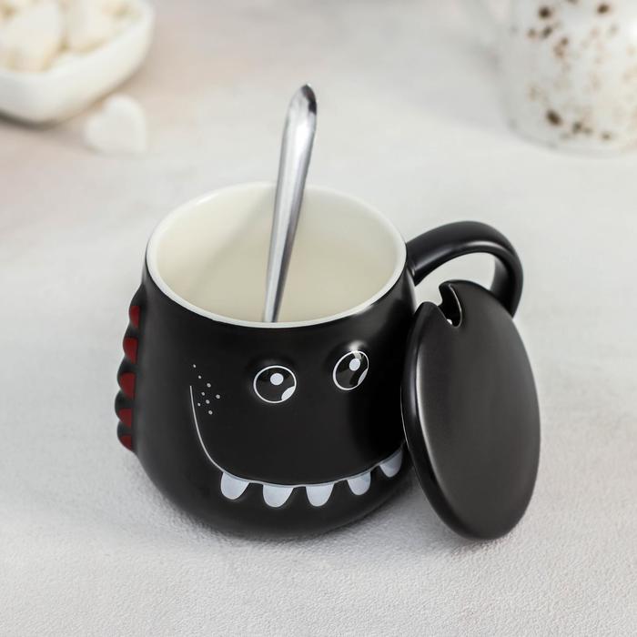 Кружка керамическая с крышкой и ложкой «Зубастик», 480 мл, цвет МИКС — Характеристики