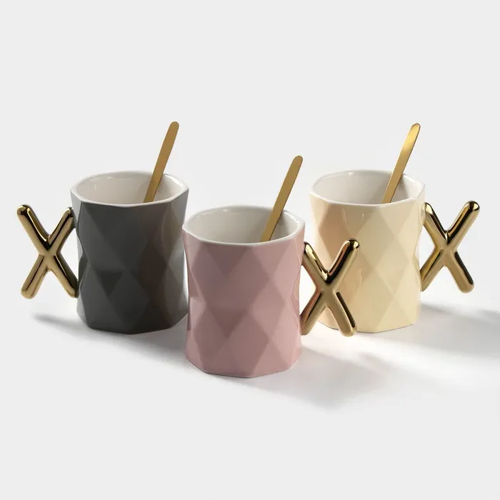 Кружка керамическая с ложкой «Луи», 250 мл, цвет МИКС — Характеристики