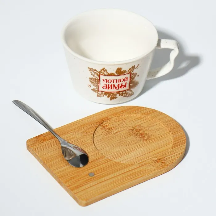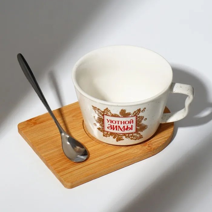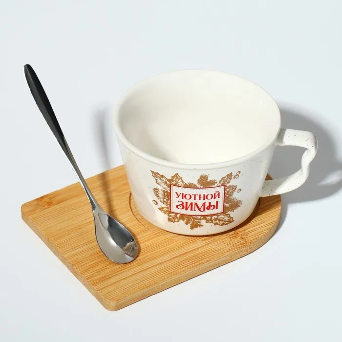 Кружка керамическая с ложкой на подставке «Уютной зимы», 230 мл — Характеристики