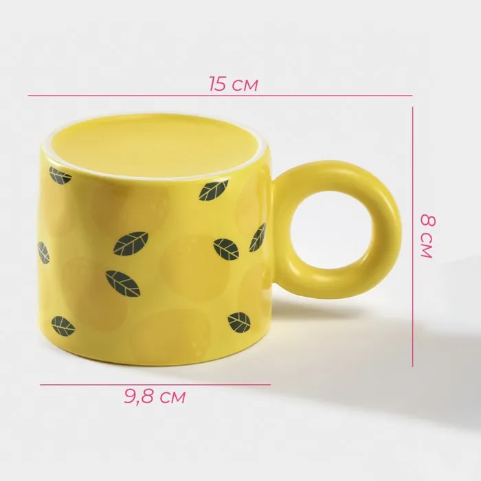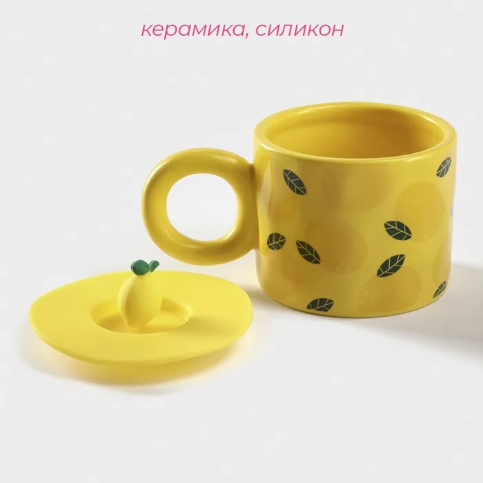 Кружка керамическая с силиконовой крышкой Доляна «Лимон», 350 мл, цвет жёлтый — Характеристики
