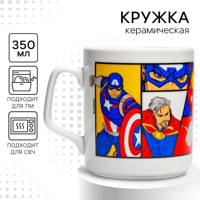Кружка керамическая, синий, 350 мл "Капитан Америка", Мстители — Характеристики