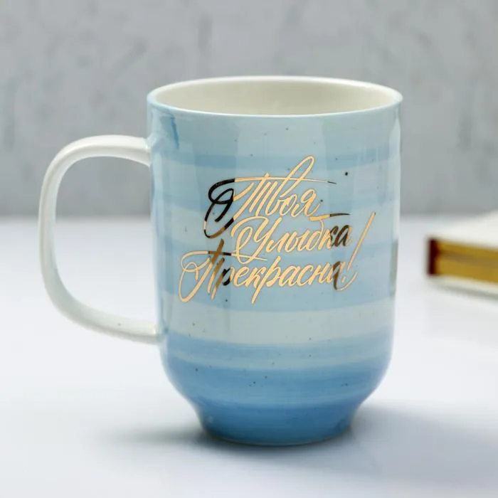 Кружка керамическая «Твоя улыбка прекрасна», 300 мл, цвет голубой — Характеристики