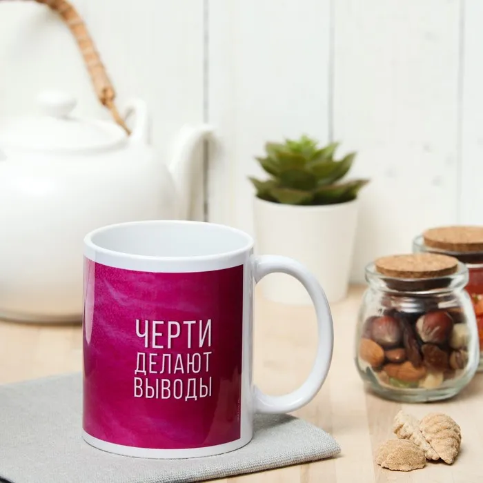 Кружка изготовлена из керамики. Рисунок нанесён методом сублимации, при котором краска проникает в верхний слой изделия, поэтому изображение получается стойким.