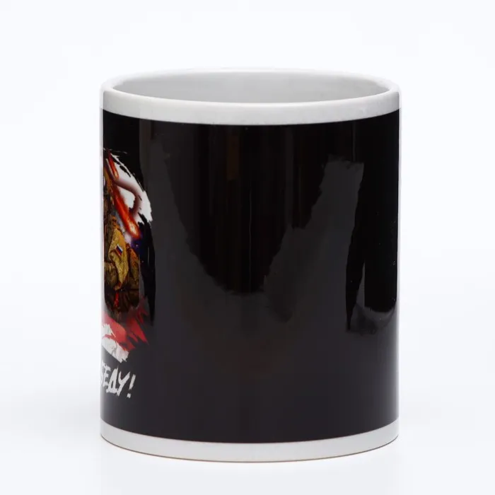 Кружка изготовлена из керамики. Рисунок нанесён методом сублимации, при котором краска проникает в верхний слой изделия, поэтому изображение получается стойким.
