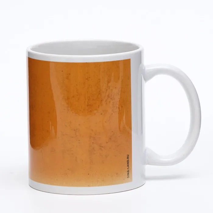 Кружка изготовлена из керамики. Рисунок нанесён методом сублимации, при котором краска проникает в верхний слой изделия, поэтому изображение получается стойким.