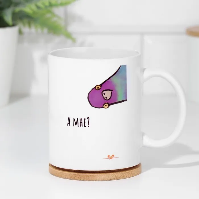 Кружка изготовлена из керамики. Рисунок нанесён методом сублимации, при котором краска проникает в верхний слой изделия, поэтому изображение получается стойким.