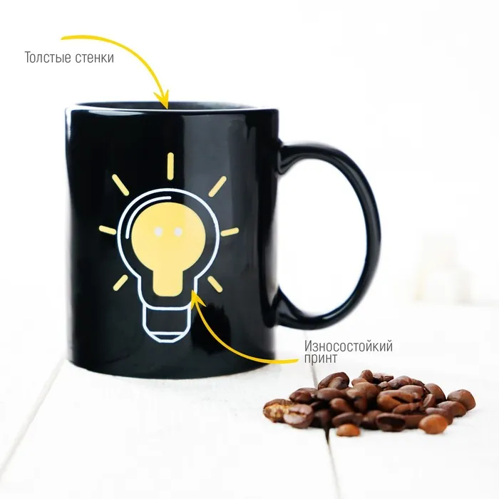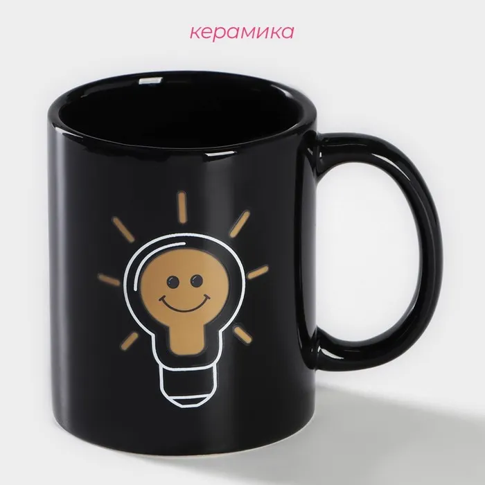 Кружка - хамелеон Доляна «Лампочка», 350 мл, керамика, цвет чёрный — Характеристики