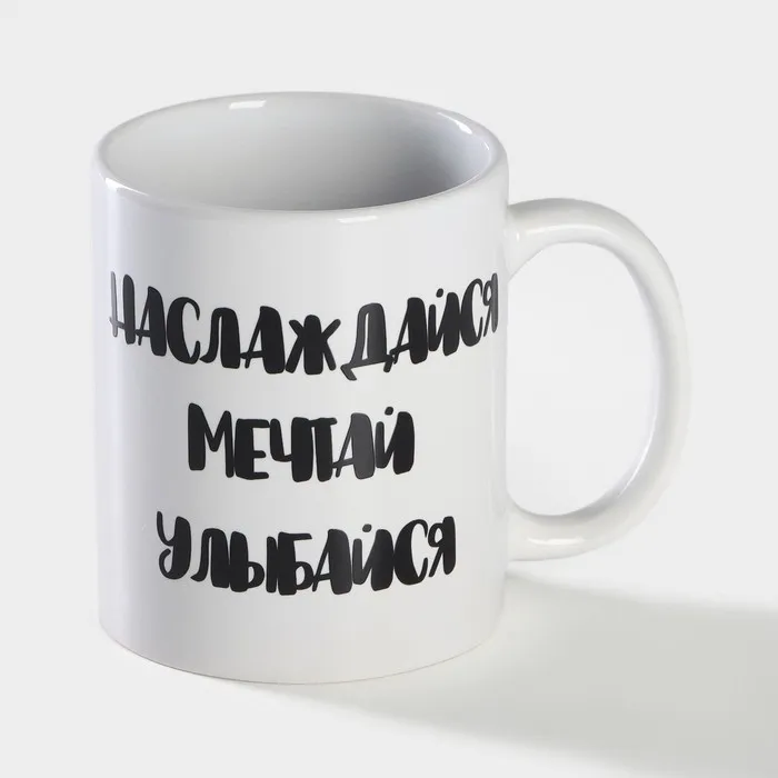 Кружка - хамелеон Доляна «Наслаждайся. Мечтай. Улыбайся», 350 мл, керамика, белая — Характеристики