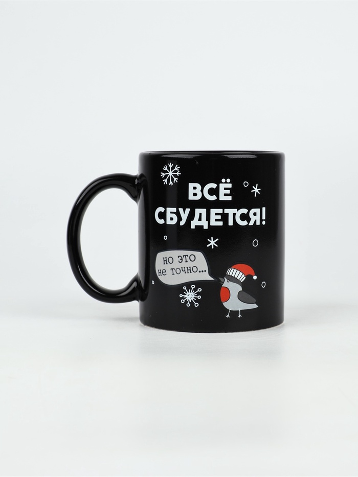 Кружка-хамелеон «Всё сбудется» — это тихое волшебство, которое не нужно объяснять. Снаружи — чёрная керамика, как зимняя ночь, и лаконичный рисунок: птичка, несколько снежинок, надпись «ВСЁ СБУДЕТСЯ». Ничего лишнего. Но стоит налить горячий напиток — и кружка *оживает*: проявляется вторая фраза, будто написанная паром, — «но это не точно…». Не насмешка. Не сомнение. А лёгкая, тёплая ирония: вера в чудо, с оговоркой взрослого человека, который всё ещё загадывает желания — но уже знает, как устроен мир.