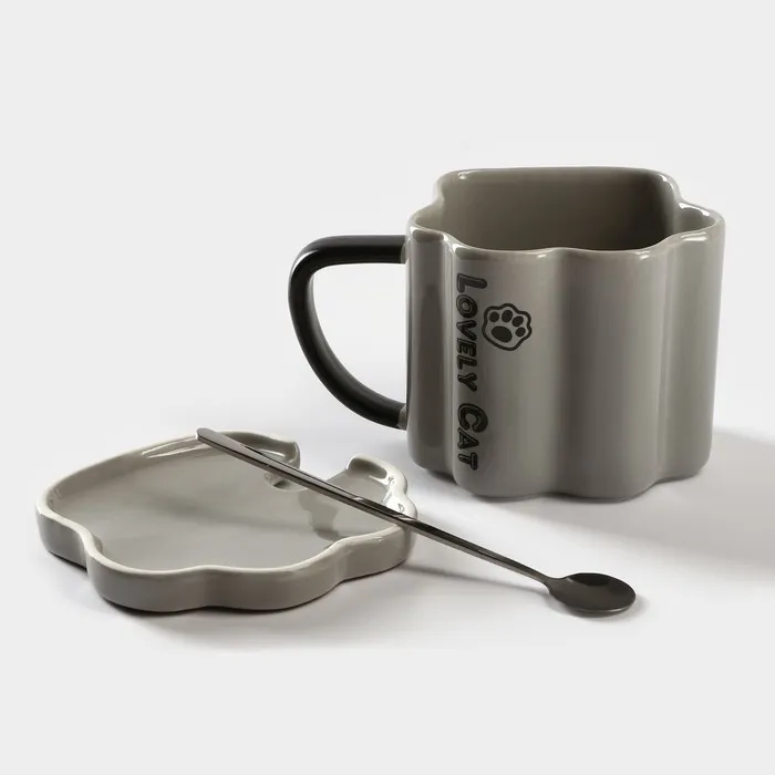 Кружка «Лапа тигра», 350 мл, керамика, нержавеющая сталь, серая — Характеристики