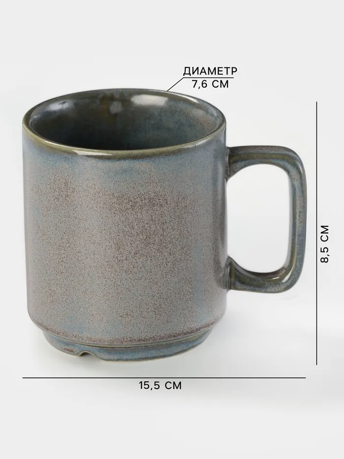 Гладкая текстура и серый цвет придают кружке современный и элегантный вид. Благодаря отсутствию рисунков и дополнительных аксессуаров, она легко впишется в любой интерьер.
