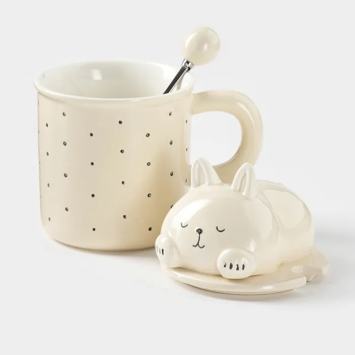 Кружка «Милый кот», 400 мл, 13.3×9.5×16 см, керамика, бежевая — Характеристики