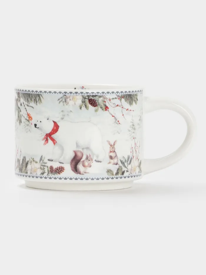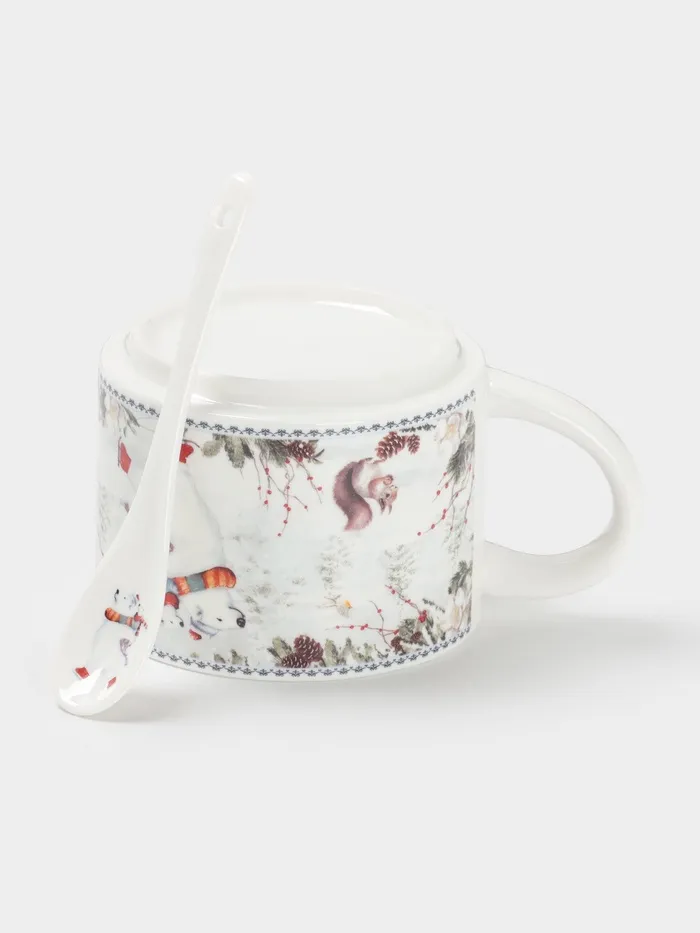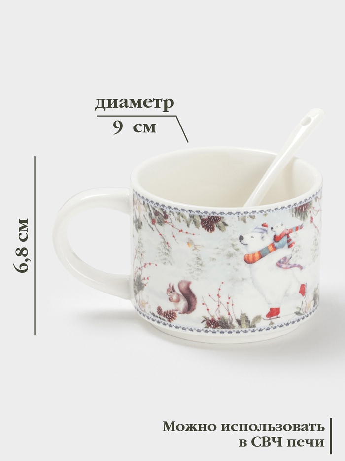 Эта новогодняя кружка с изображением белого мишки в комплекте с ложкой станет уютным дополнением праздничных чаепитий. Объем 280 мл позволяет насладиться горячим напитком, а яркий дизайн с сказочными животными создаст атмосферу волшебства и тепла в зимние дни.
