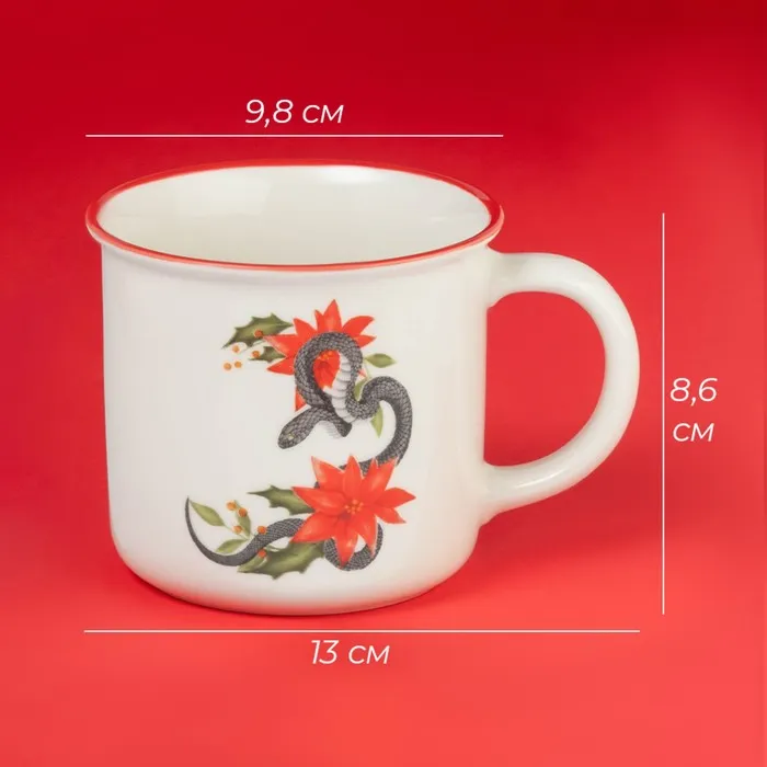 Кружка новогодняя Доляна «Год Змеи», 380 мл, 13×9,8×8,6 см, белая — Характеристики