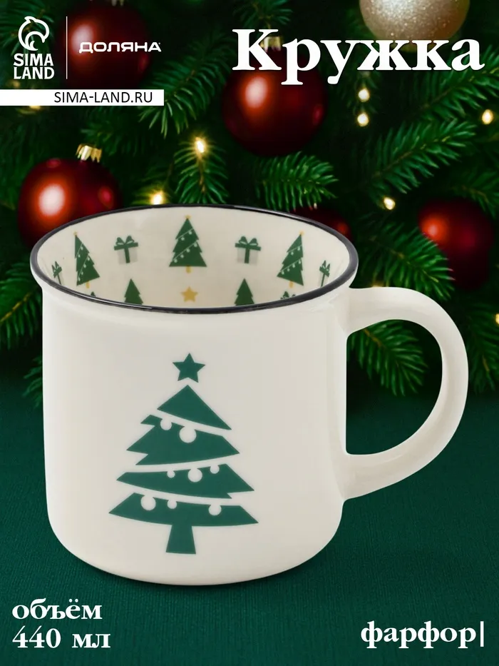 Кружка новогодняя Доляна «Ёлочка», 440 мл, фарфор, белая — Характеристики