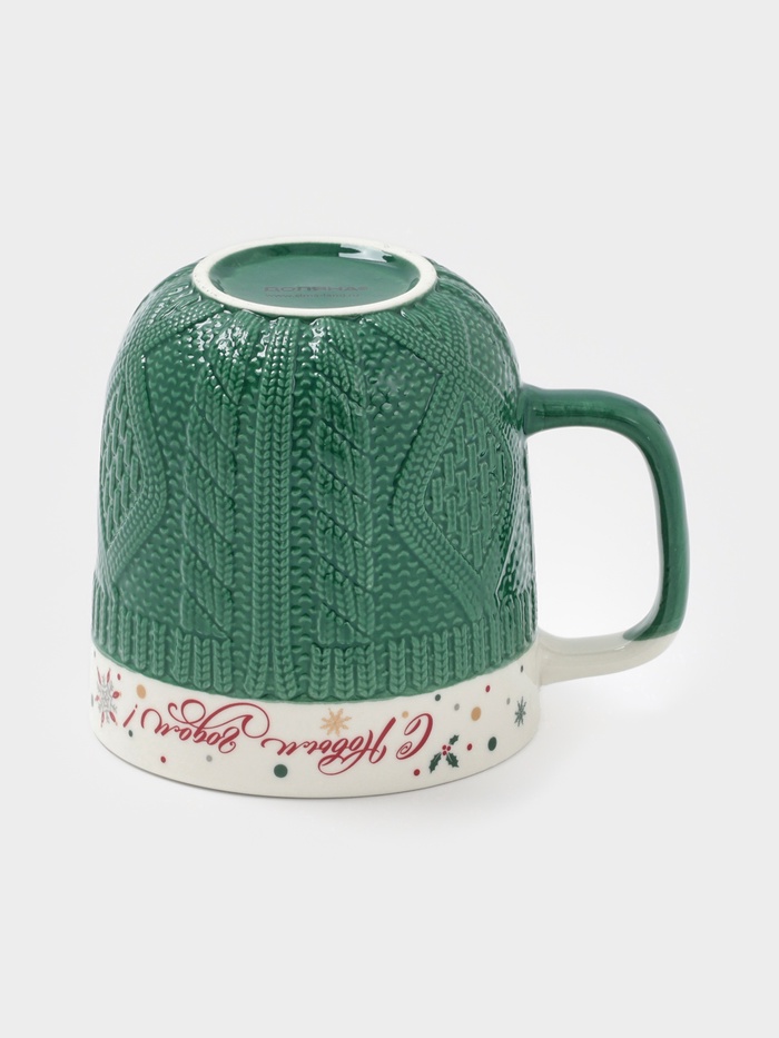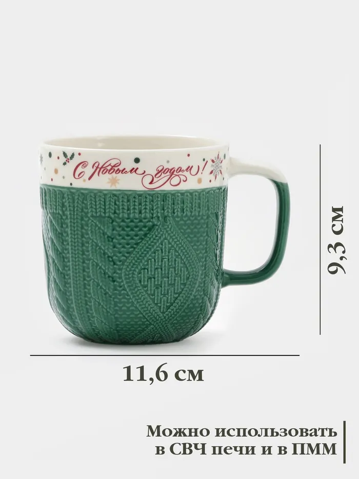 Эта праздничная кружка с фактурой вязаного свитера согревает руки и создаёт уютное настроение даже в холодный день. Зелёный цвет напоминает о хвойных ветках, а рельефная поверхность приятно контрастирует с глянцевым рисунком. Объём 380 мл подходит для утреннего кофе или вечернего чая с мёдом.