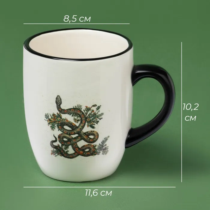 Кружка новогодняя Доляна «Василиск», 400 мл, для чая, 11,6×8,5×10,2 см, белая — Характеристики