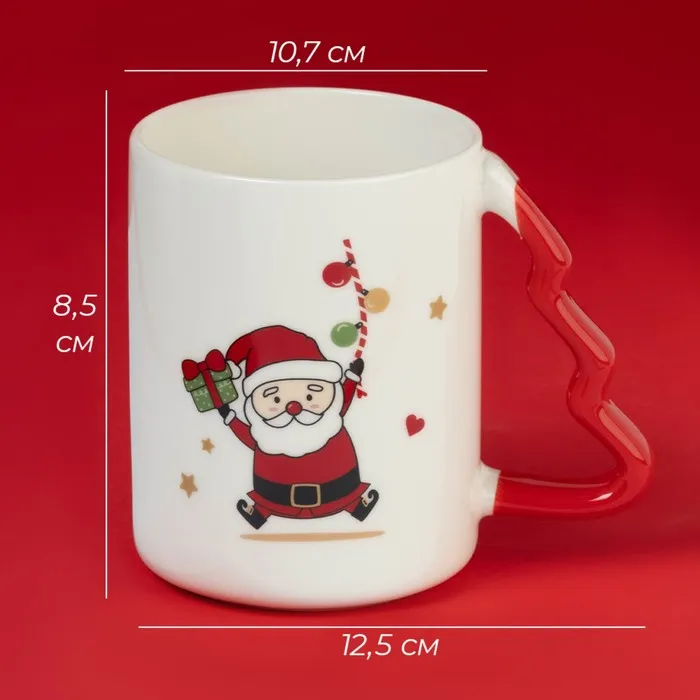 Кружка новогодняя Доляна «Веселый дедушка», 400 мл, для чая, 12,5×8,5×10,7 см — Характеристики