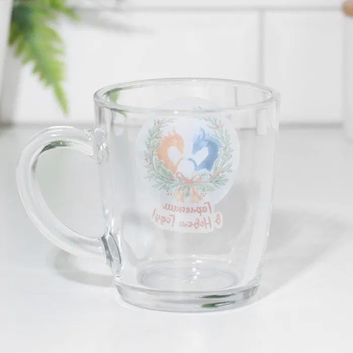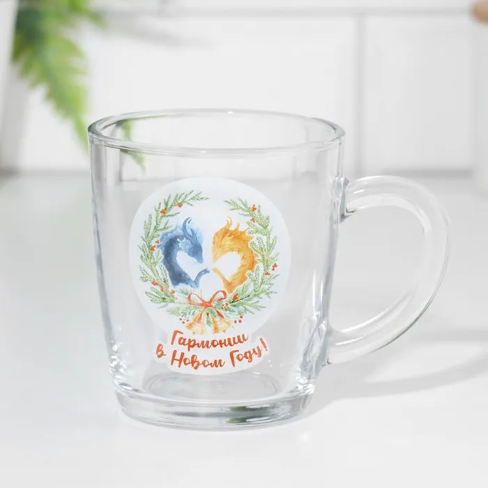 Кружка новогодняя "Гармонии в Новом Году!" 340мл, закаленное стекло, деколь, колокольчик — Характеристики