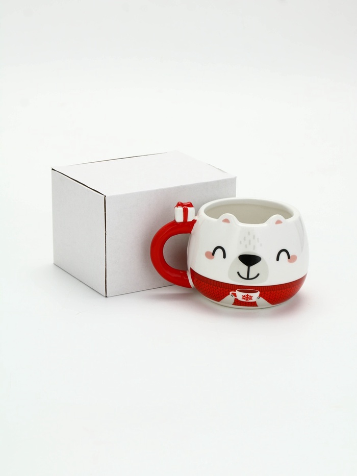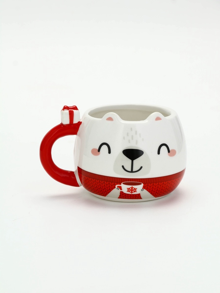 - Эстетичный внешний вид: новогодняя кружка в форме мишки станет ярким акцентом на вашем столе и поднимет настроение;