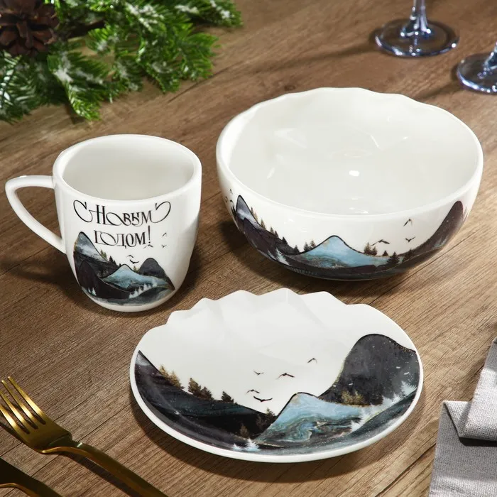 Кружка новогодняя керамическая «Горы», 350 мл, белая — Характеристики