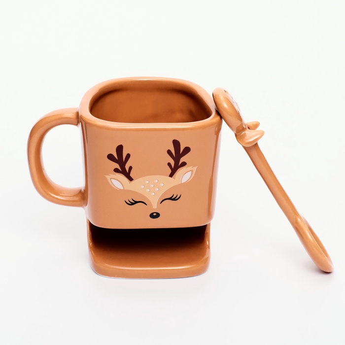 Кружка новогодняя керамическая «Олененок», 200 мл, с ложкой — Характеристики