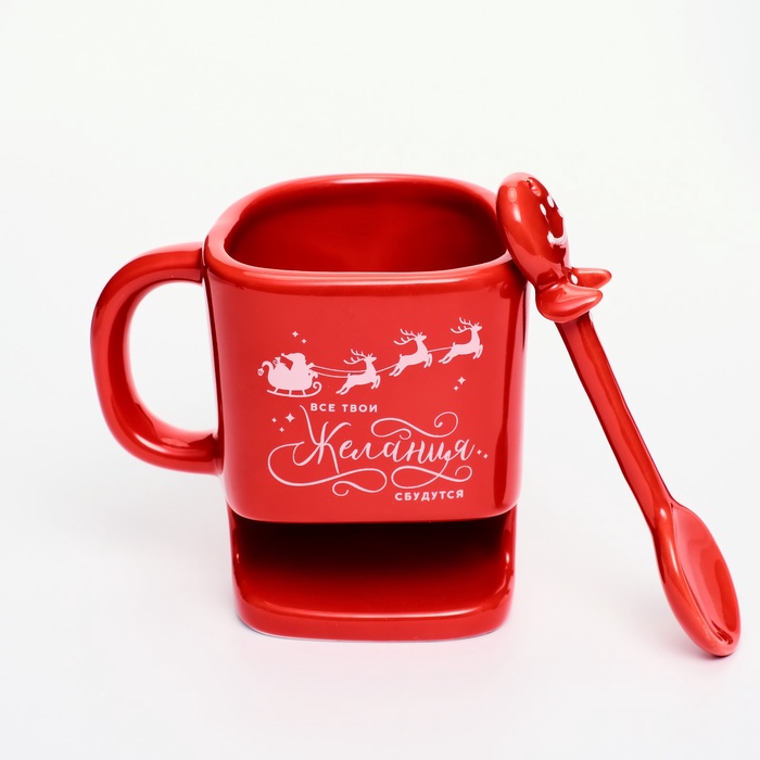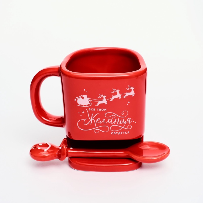 Кружка новогодняя керамическая «Желания сбудутся», 200 мл, с ложкой — Характеристики