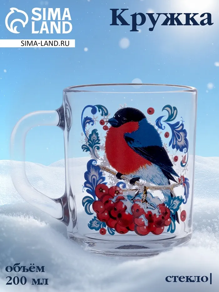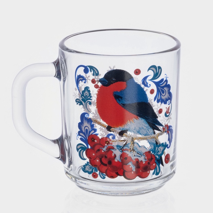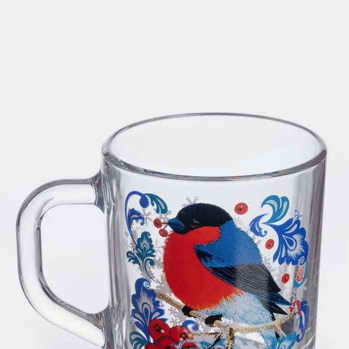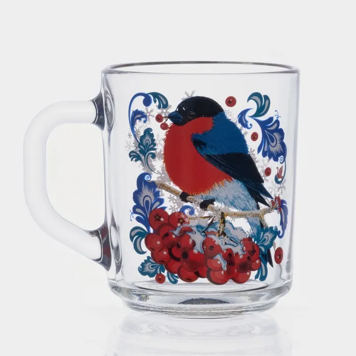 Кружка новогодняя стеклянная для чая «Снегири на рябине», 200 мл — Характеристики