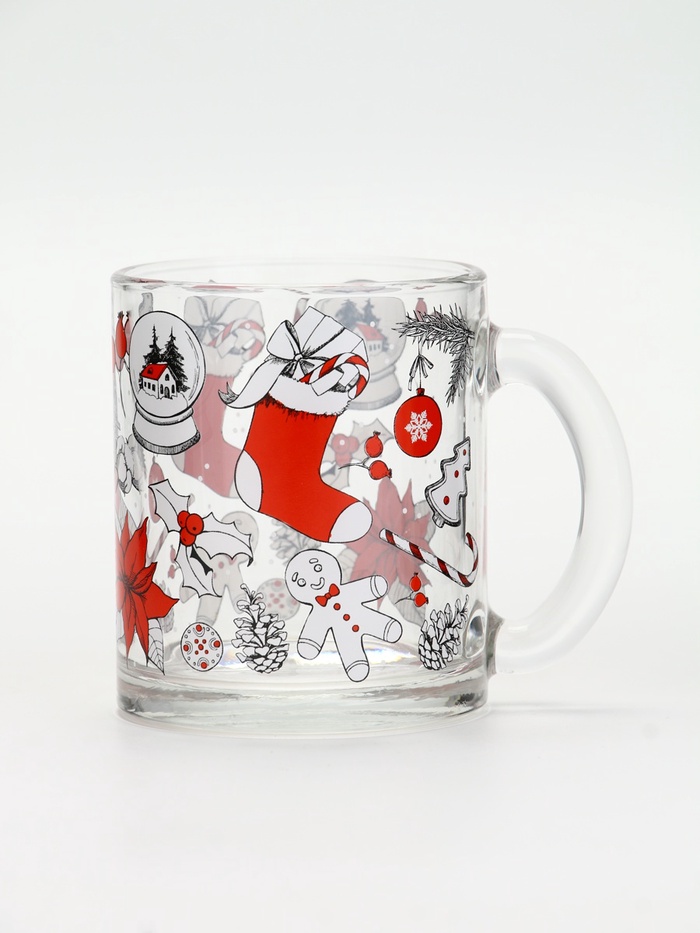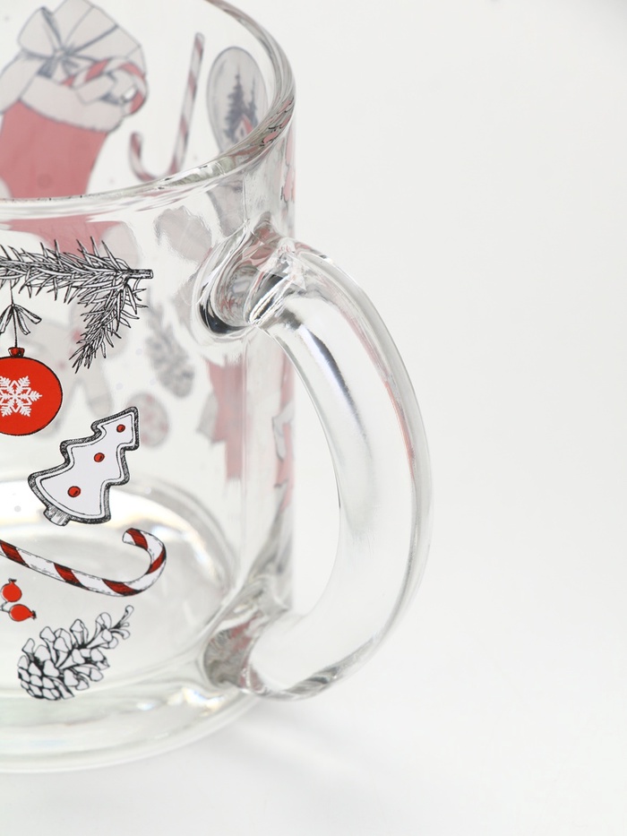 Стеклянная новогодняя кружка — это стильный и практичный аксессуар для вашей кухни или офиса.